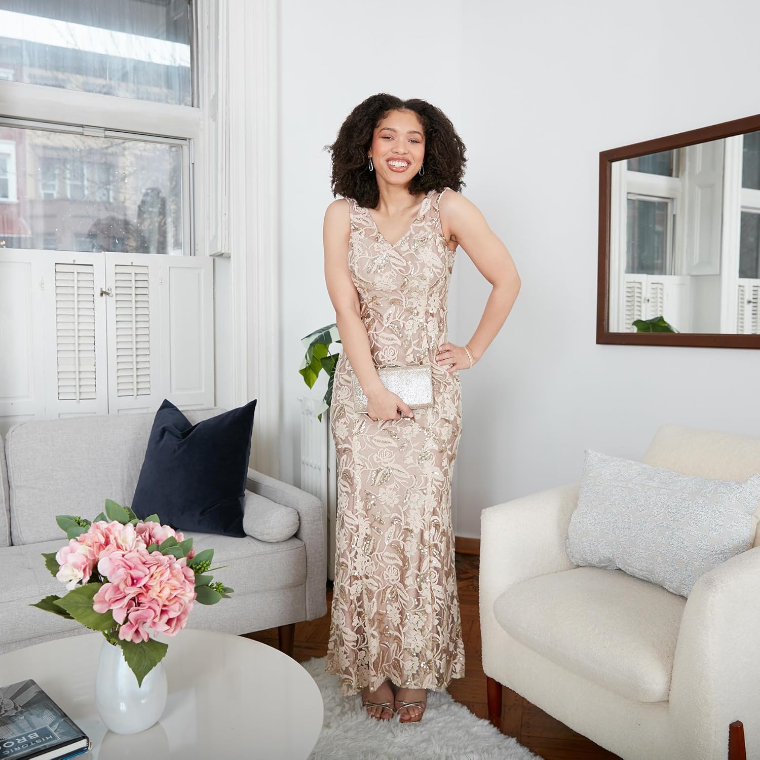 Alex Evenings Women’s Floor Length Sleeveless V-Neck, Elegant Mother of The Bride Dress, Formal Events