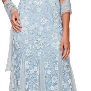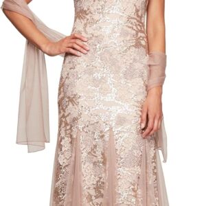 Alex Evenings Women’s Long Fit and Flare Mother of The Bride Dress with Godet Detail (Petite and Regular Sizes)