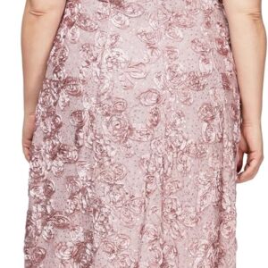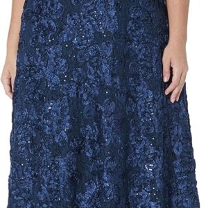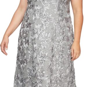 Alex Evenings Women’s Plus Size Tea Length Dress with Rosette Detail