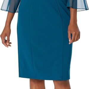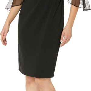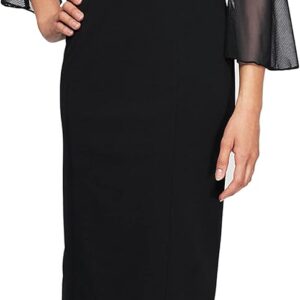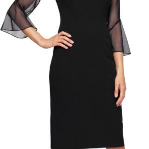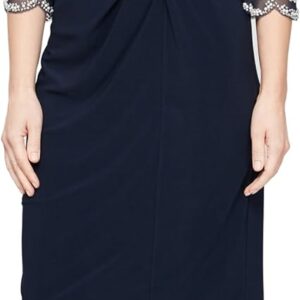 Alex Evenings Women’s Short Shift Cocktail Dress with Embellished Illusion Detail, Wedding Guest (Petite and Regular Sizes)