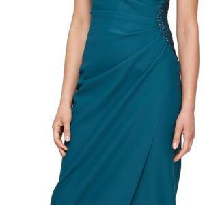 Alex Evenings Women’s Slimming Long Cap Sleeve Dress with Side Beaded Detail