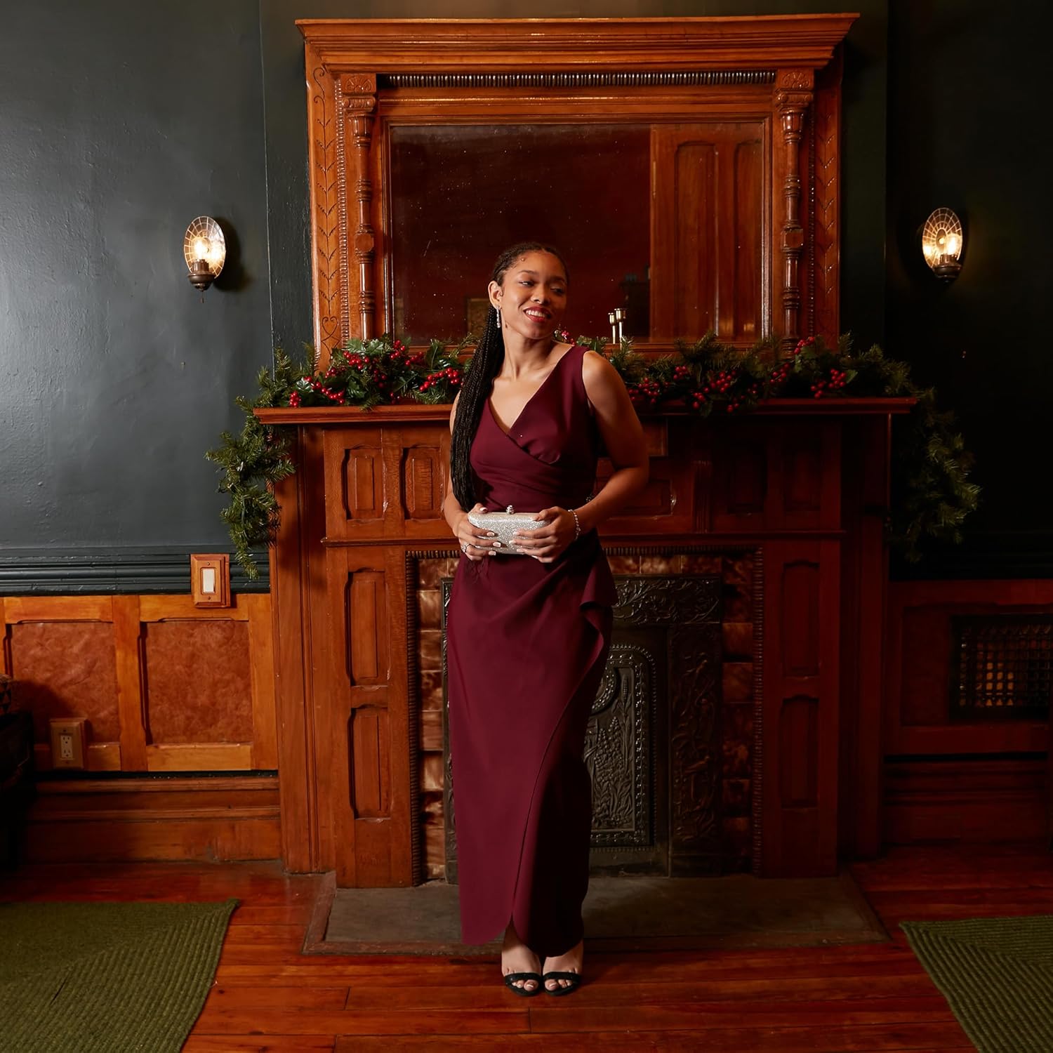 Alex Evenings Women’s Slimming Long Side Ruched Mother of The Bride Dress W\/Cascade Ruffle Skirt (Petite and Regular Sizes)