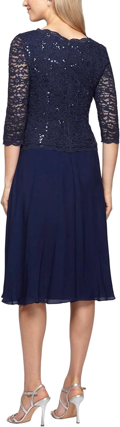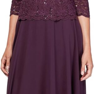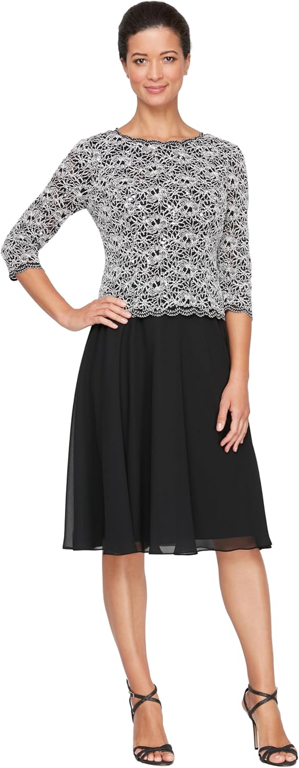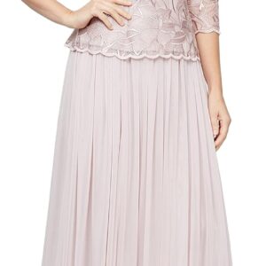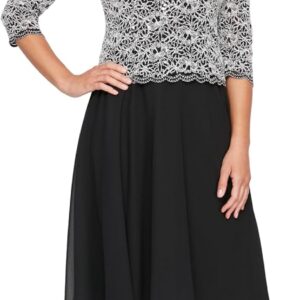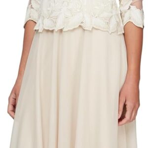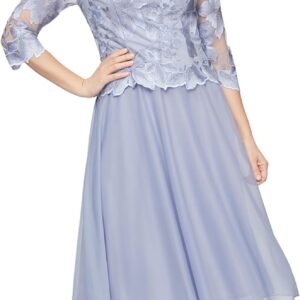 Alex Evenings Women’s Tea Length Embroidered Bodice Mother of The Bride Gown, Wedding Guest Dress (Petite and Regular Sizes)