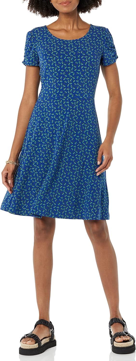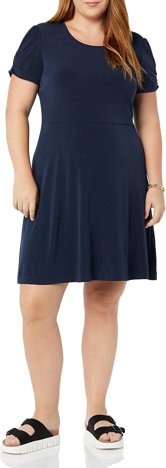Amazon Essentials Women’s Gathered Short Sleeve Crew Neck A-line Dress (Available in Plus Size)