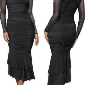Atizon Formal Bodycon Maxi Dress Long Sleeve