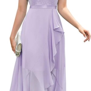 Lace chiffon dress specially designed with hi-lo ruffle skirt, suitable as a formal dress. Comfy and flattering silhouette, ideal as a wedding guest dress and prom party dress. Elegant and classic style, great for wedding prom party, a nice bridesmaid dress or bridal shower dress.