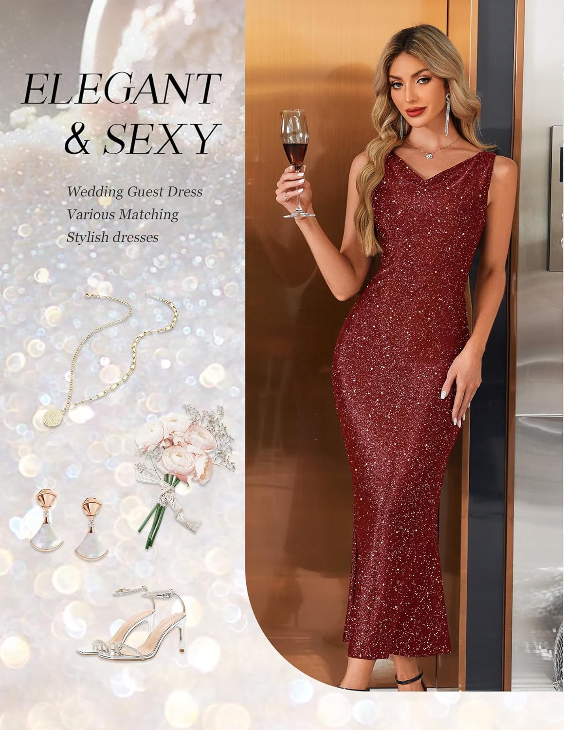 BeryLove Formal Sequin Homecoming Wedding Guest Cocktail Bodycon Prom Dresses