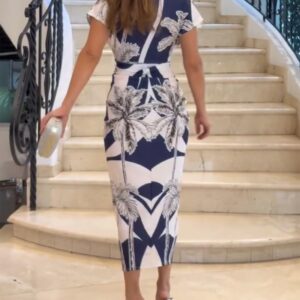 Midi Dress Features Waist-Enhancing Ruched, Floral Print Design, Slit Design