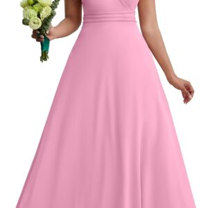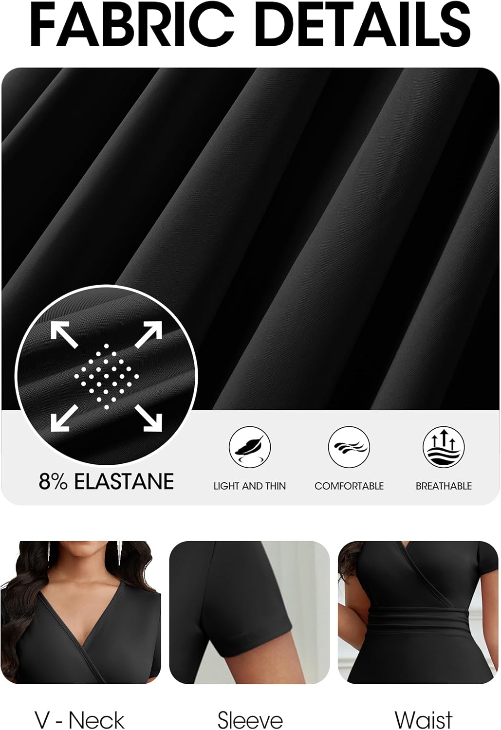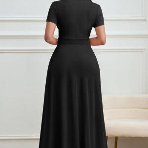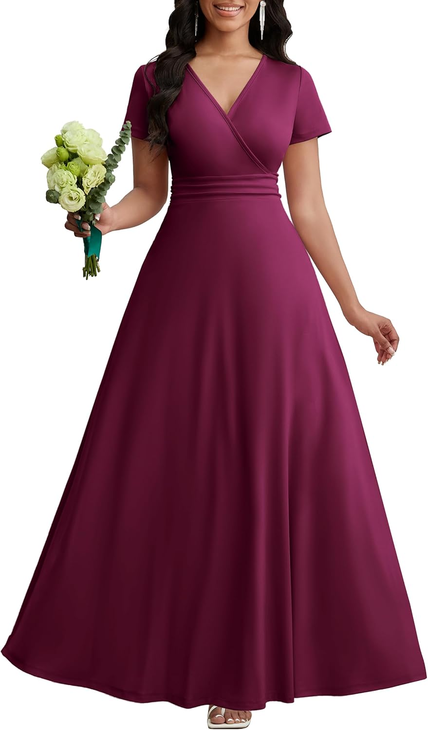CLOCOR Maxi Dress for Women Long Formal Short Sleeve A Line V Neck Dresses Wedding Guest High Waist Elegant