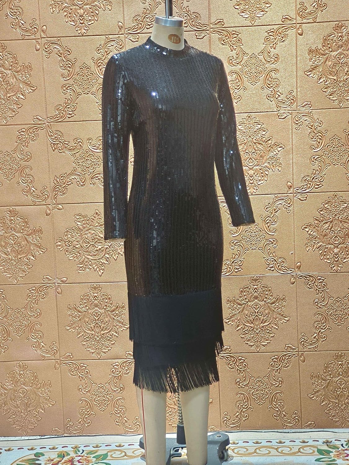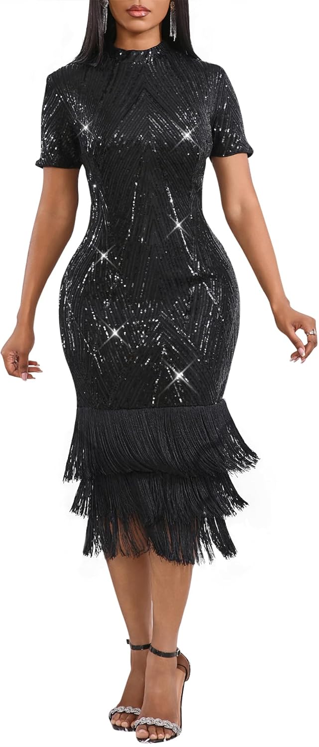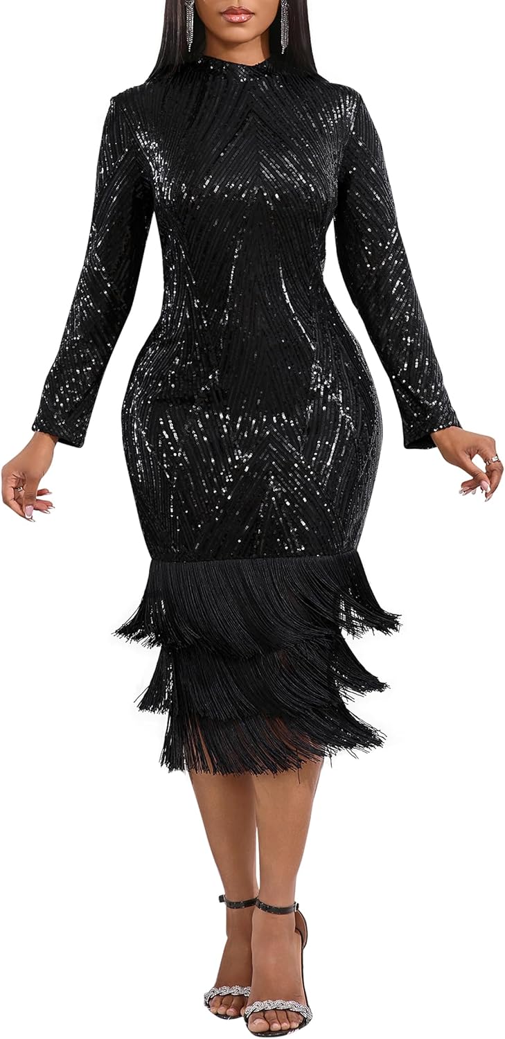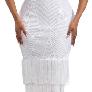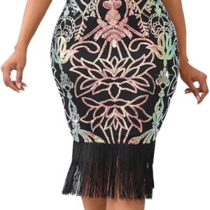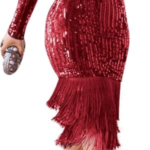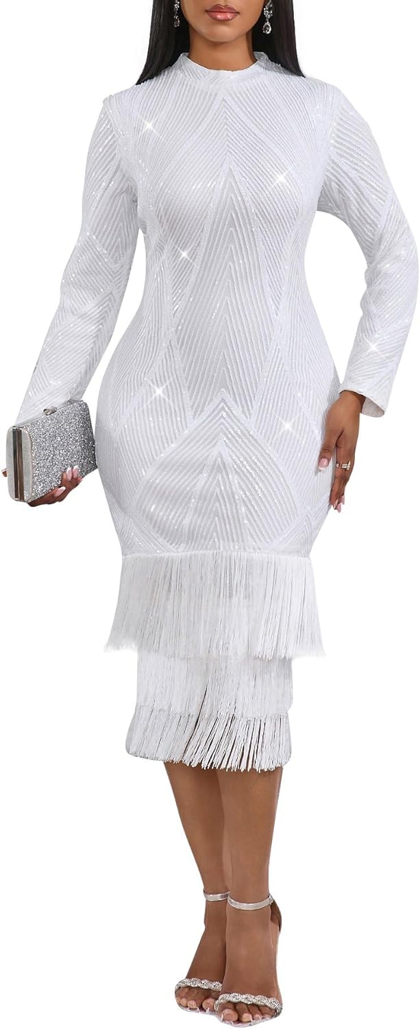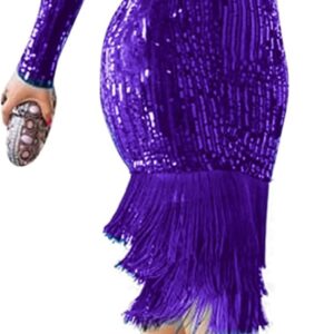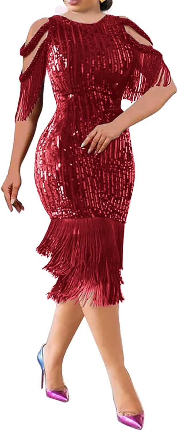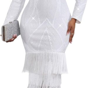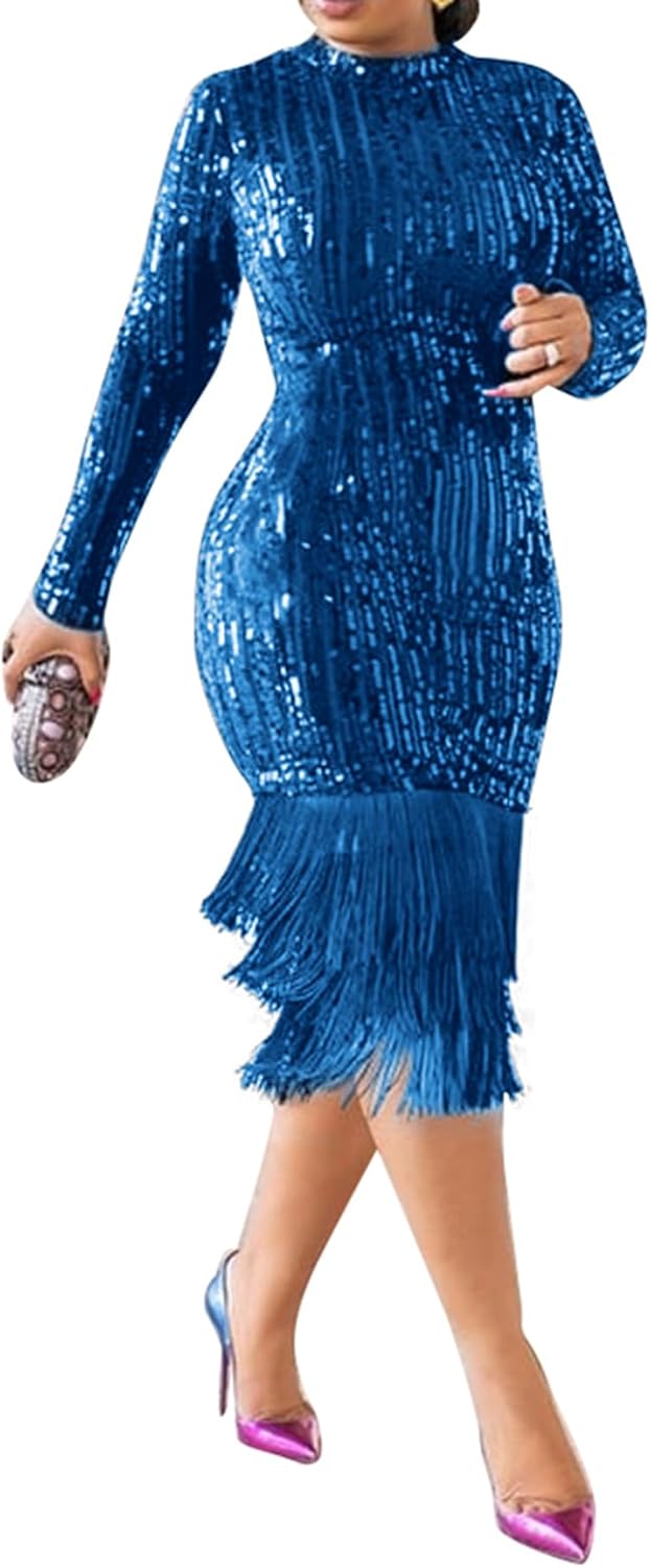 Cololura Sexy Elegant Women Sequin Tassel Bodycon Midi Dress Party Evening Gown Formal Dress
