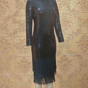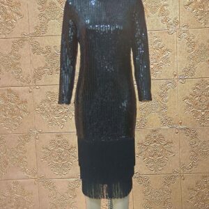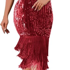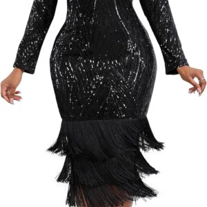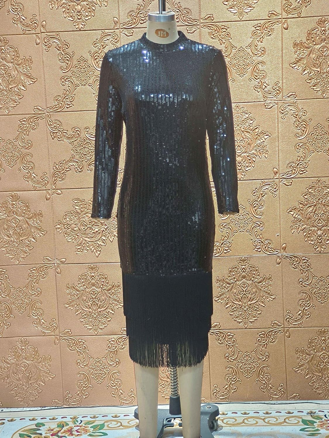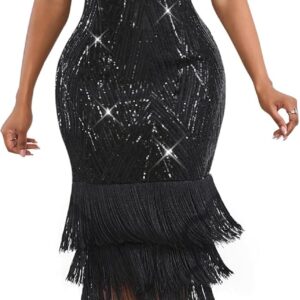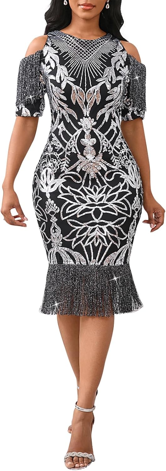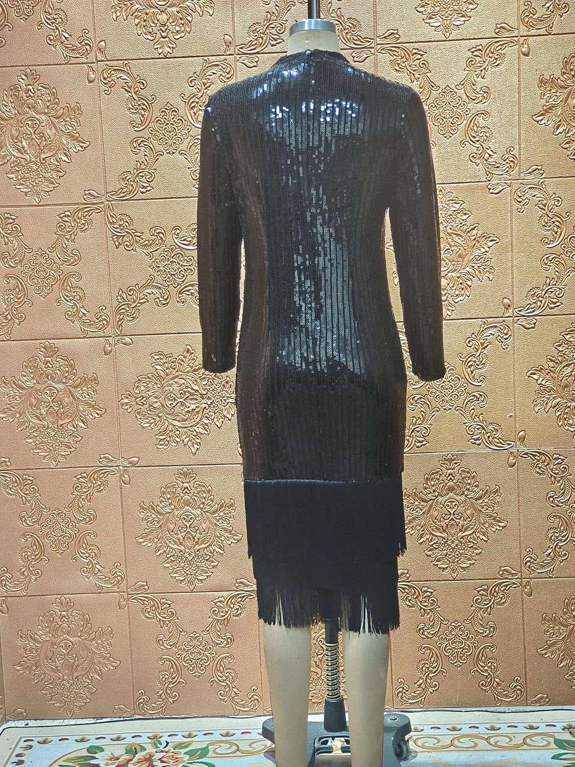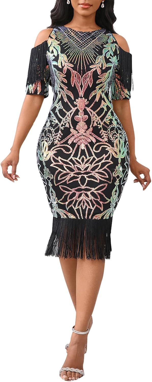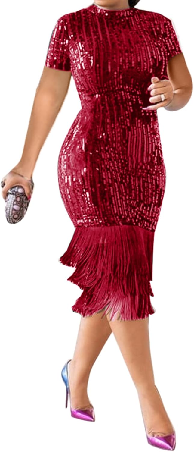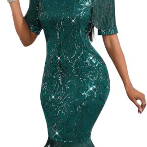 Cololura Sexy Elegant Women Sequin Tassel Bodycon Midi Dress Party Evening Gown Formal Dress