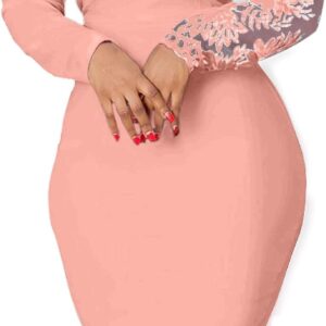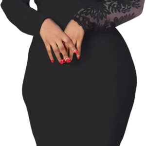 Cololura Women Elegant Floral Lace Patchwork Long Sleeve Evening Gown Party Cocktail Bodycon Dress