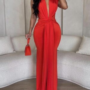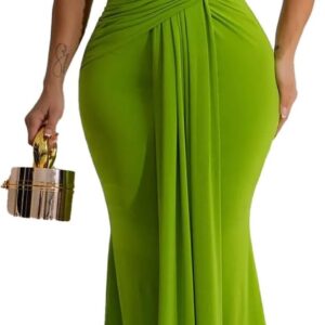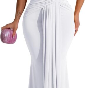 Ekaliy Elegant Bodycon Dresses for Women Deep V Neck Maxi Dress Mermaid Long Dress