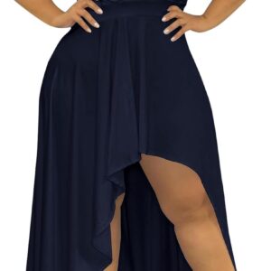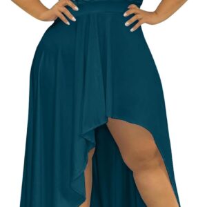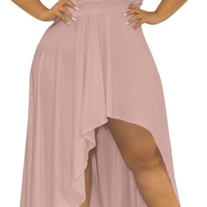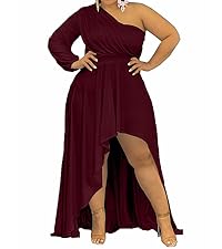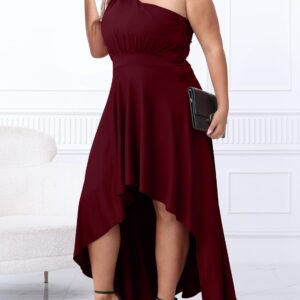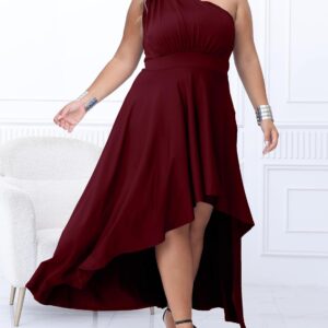 Ekaliy Women Plus Size One Shoulder Maxi Dress High Low Irregular Long Dress