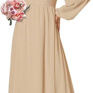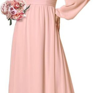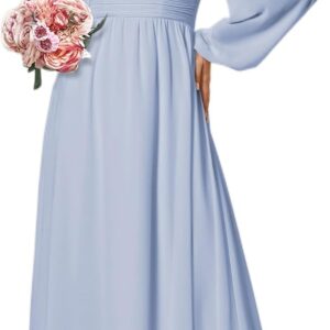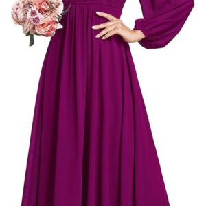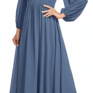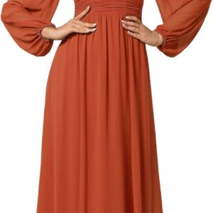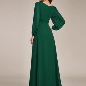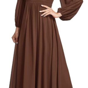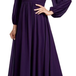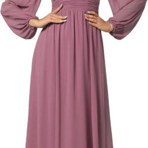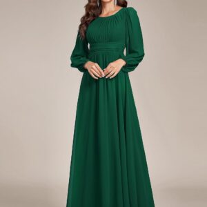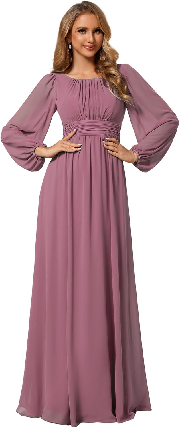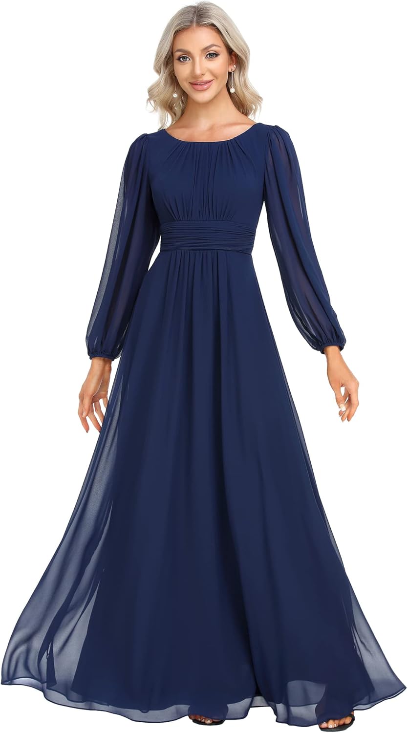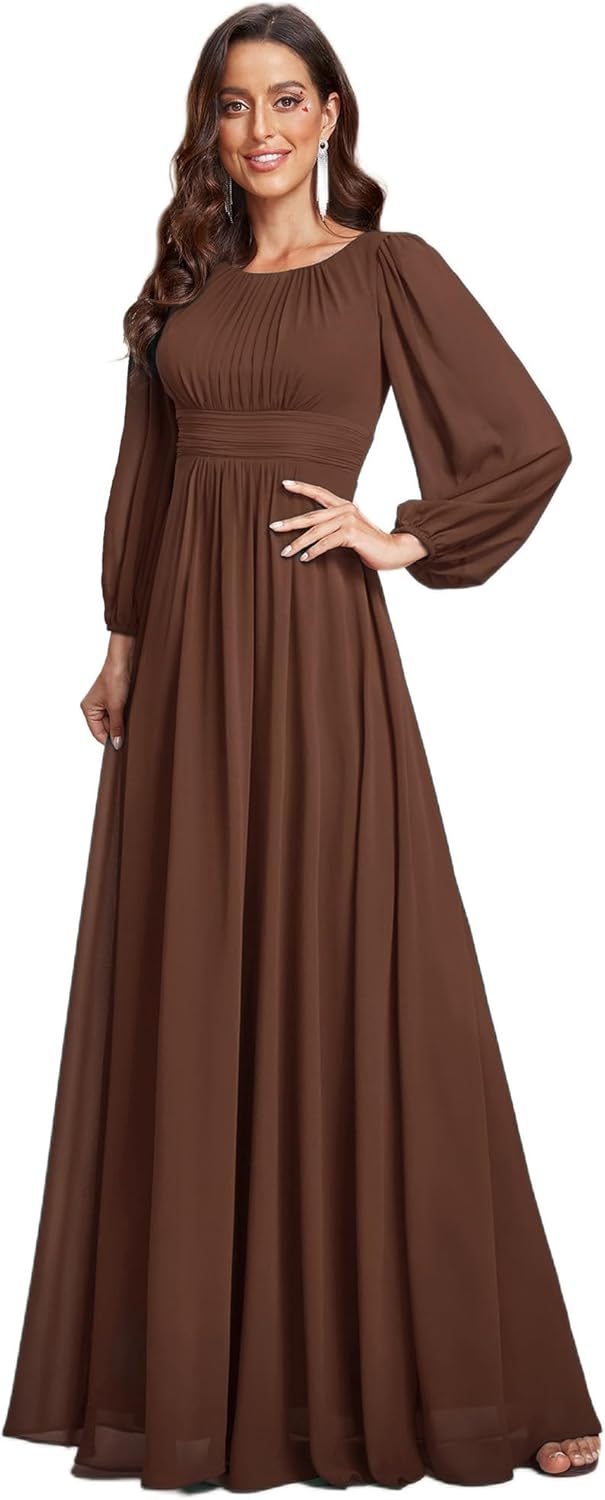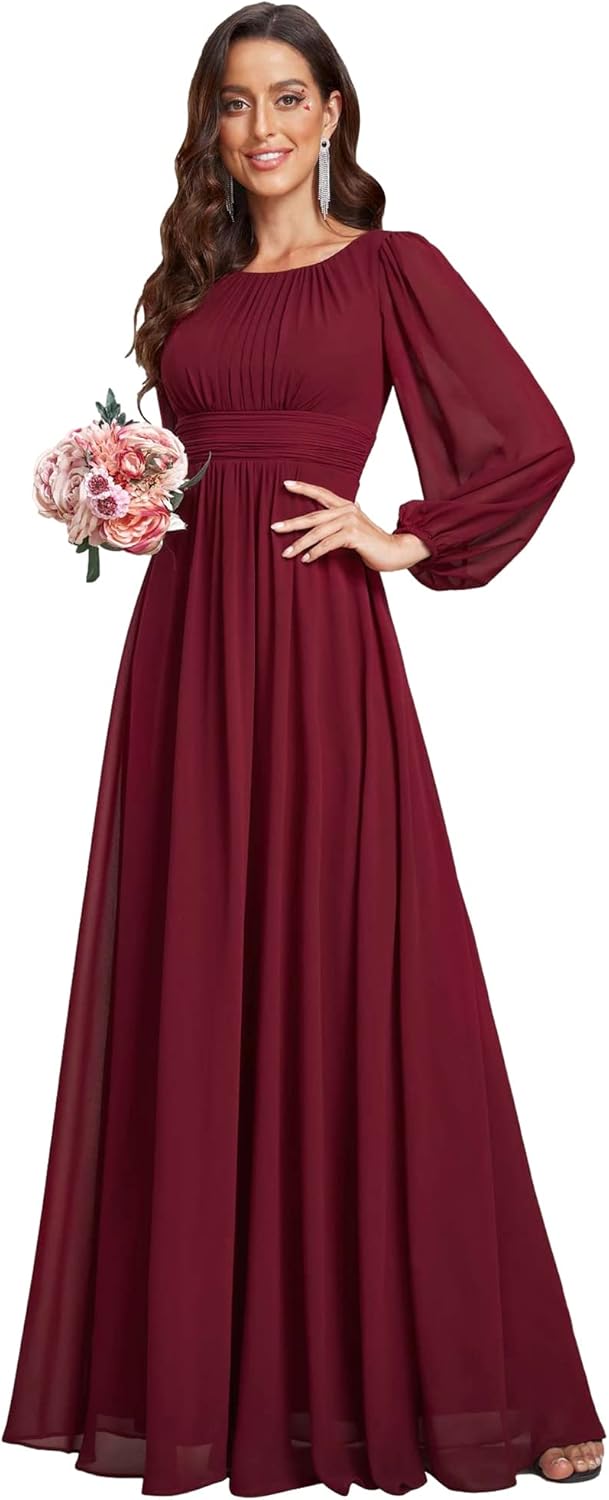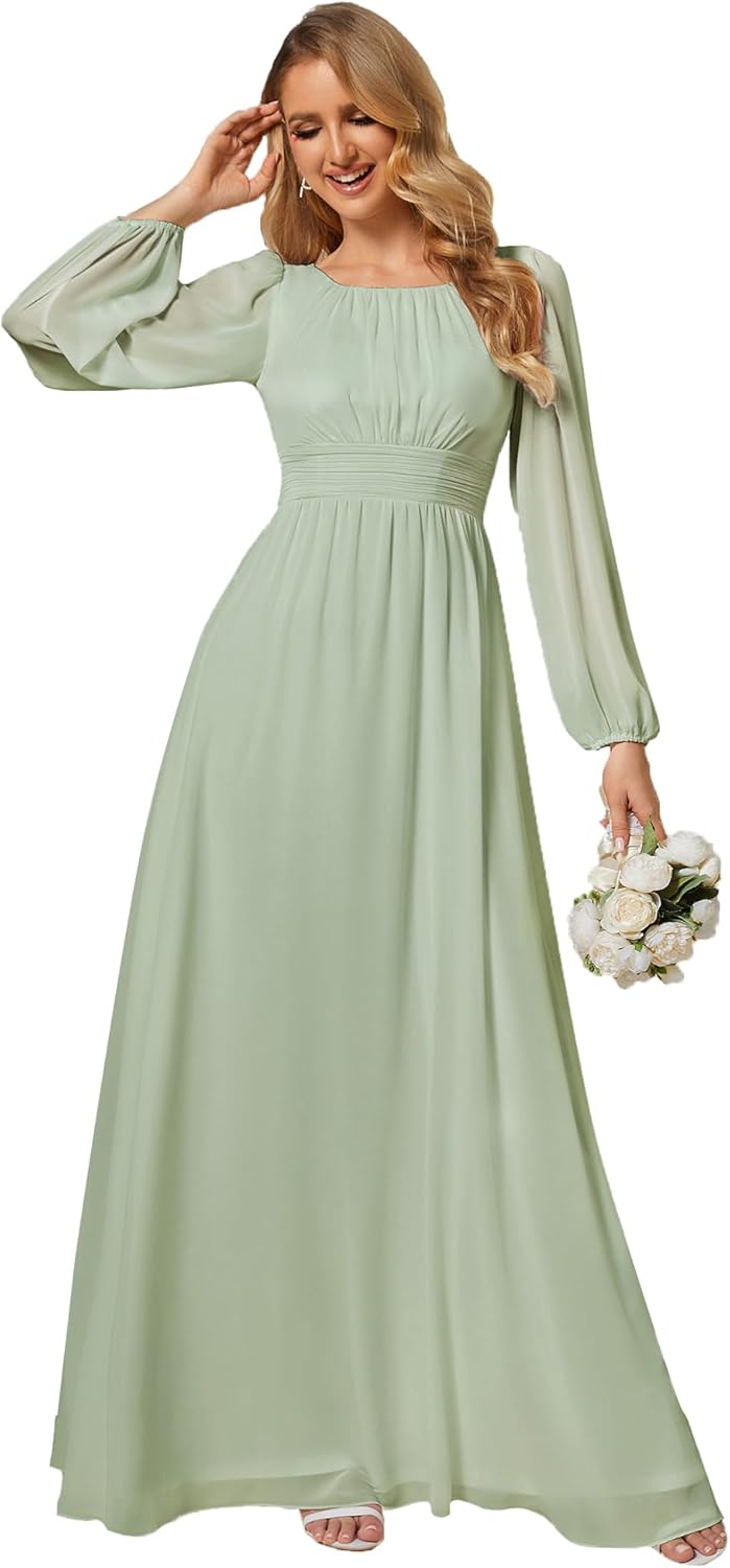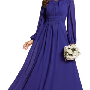 Ever-Pretty Women’s Crewneck Long Lantern Sleeves Floor Length A-Line Pleated Chiffon Formal Dress 0106B