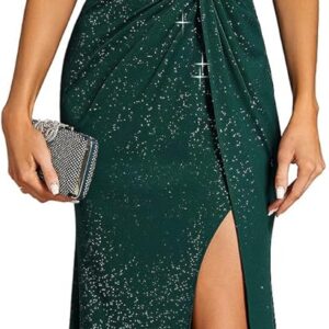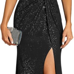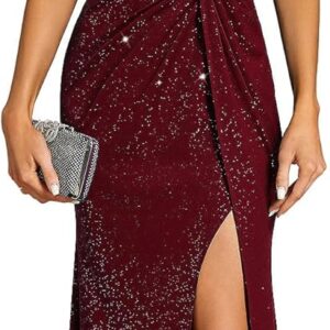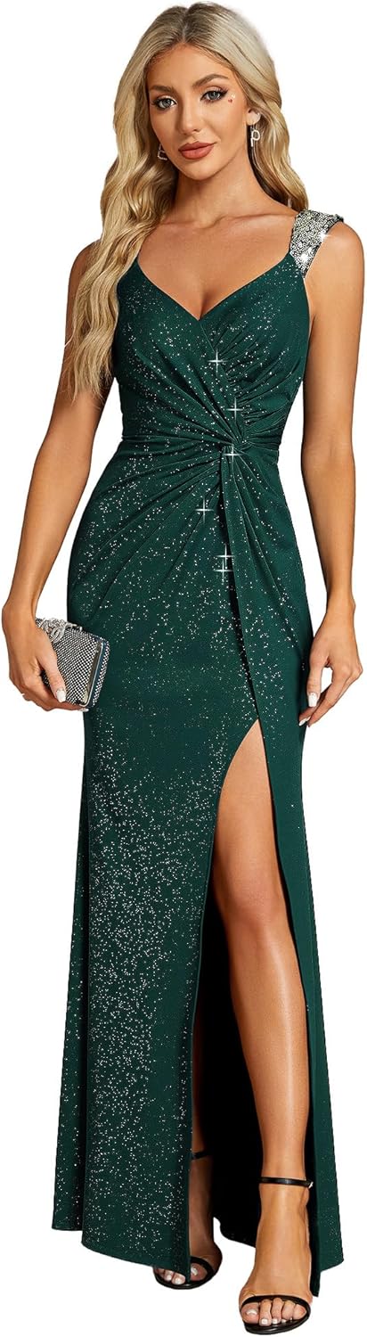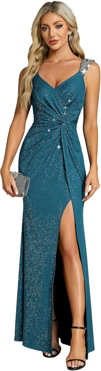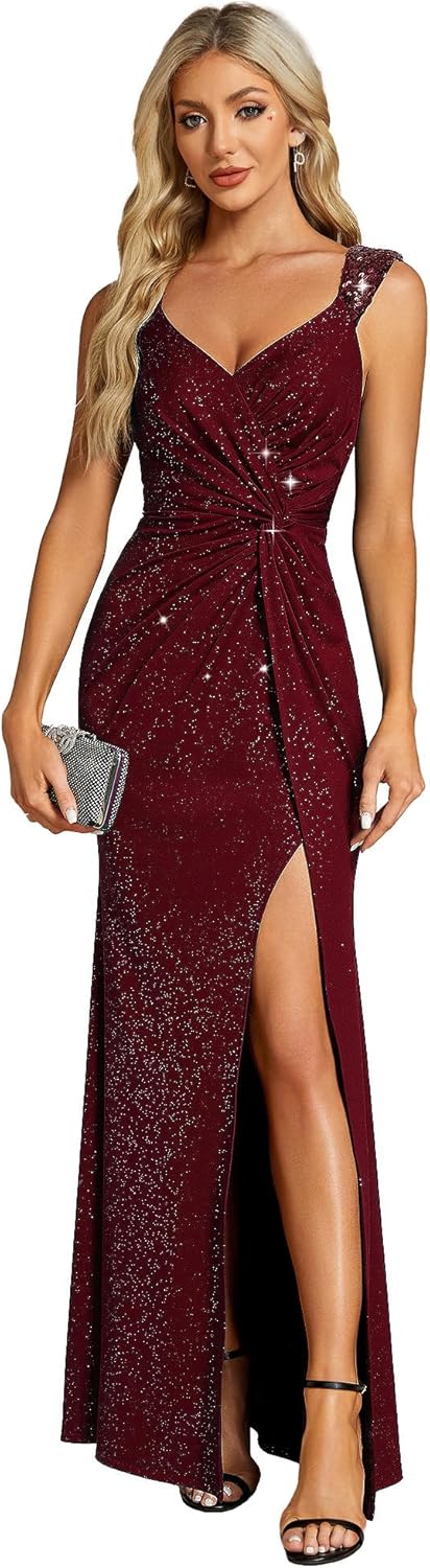 Ever-Pretty Women’s V Neck Stretchy Glitter Bodycon Ball Gowns Sleeveless High Split Formal Evening Dresses 01888