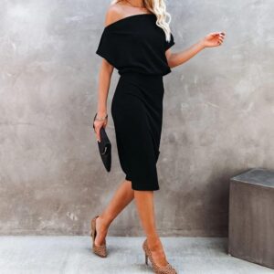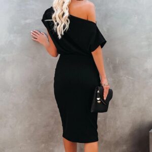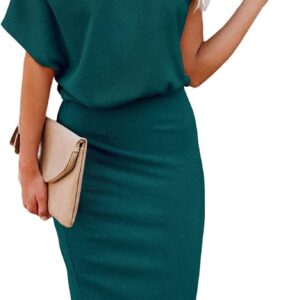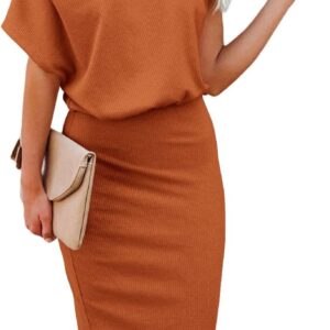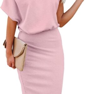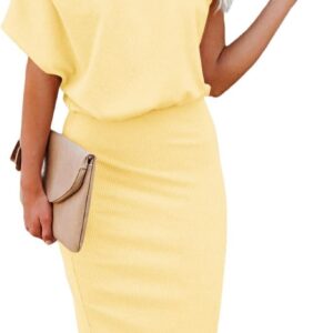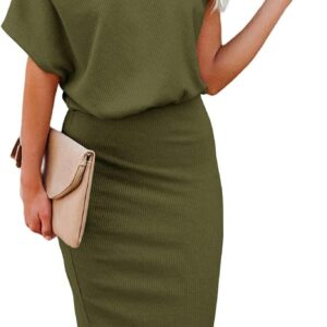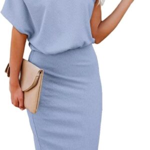 Ezbelle Women’s 2025 Summer Dress Off The Shoulder Short Sleeve Ribbed Casual Party Bodycon Midi Dresses