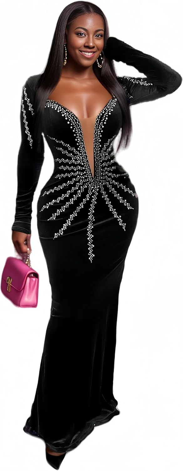 Figdaw Rhinestone Embellished Formal Gowns and Evening Dresses for Women 2025