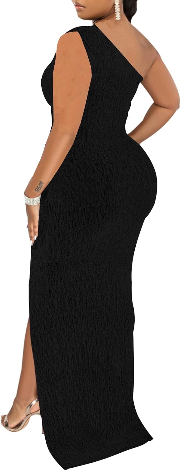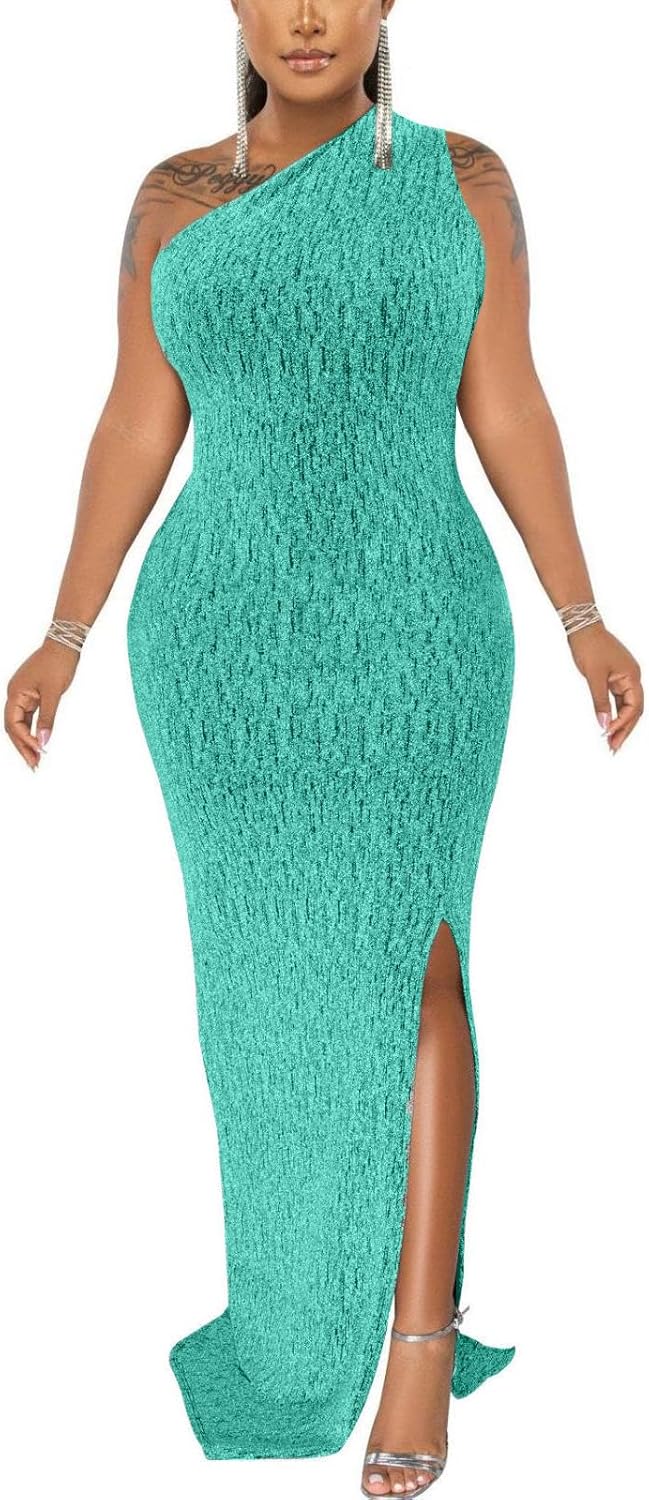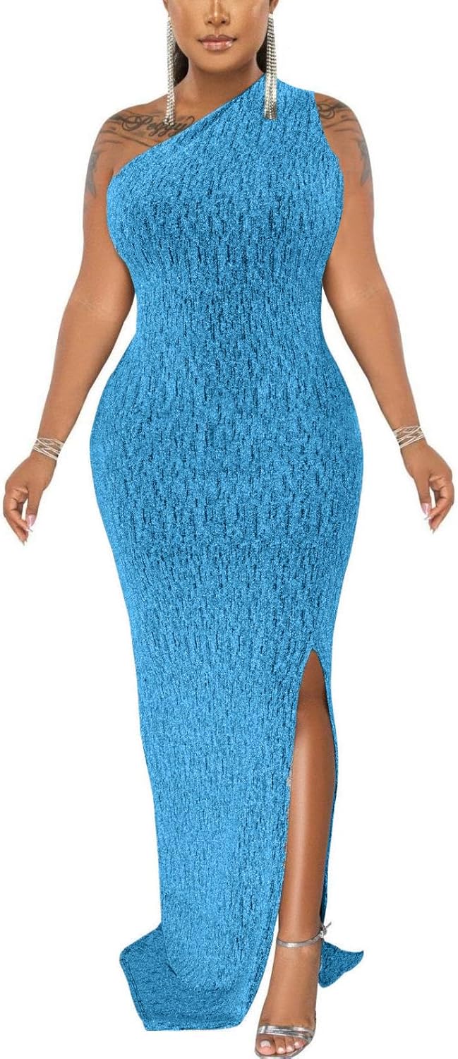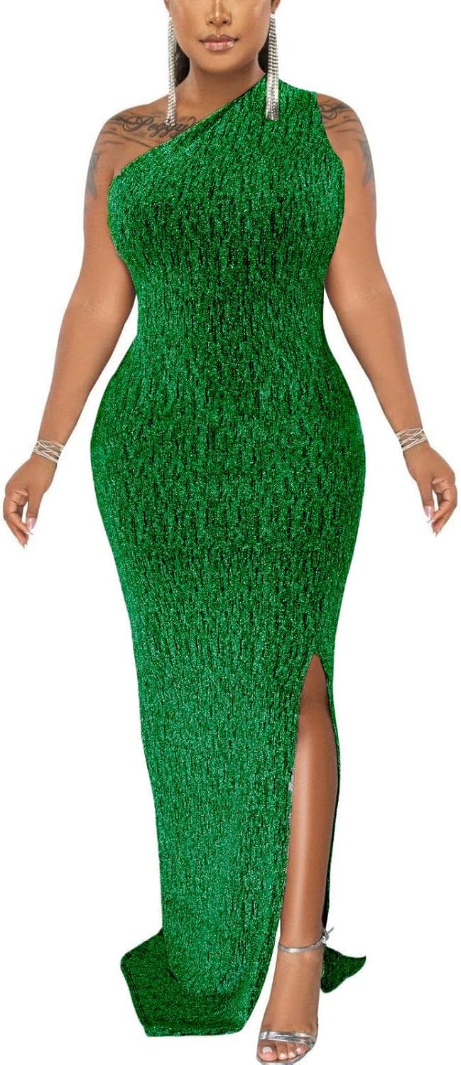 Formal Dress for Women Elegant Sparkly One Shoulder Sleeveless High Split Cocktail Party Prom Dresses