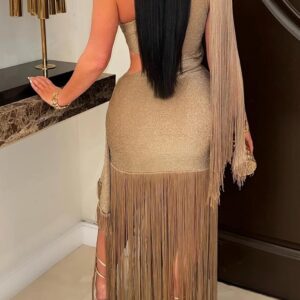 GEULIS Cut Out Bodycon Birthday Party Tassel Maxi Dresses