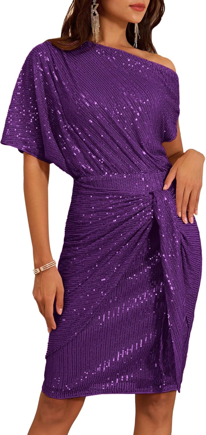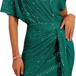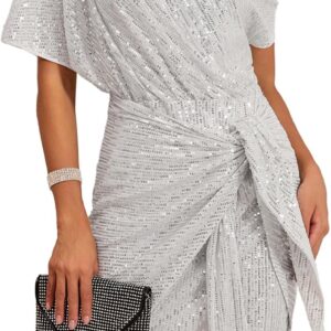 GRACE KARIN Women’s Sequin Sparkly Glitter Party Club Dress One Shoulder Ruched Cocktail Bodycon Dress