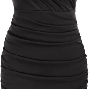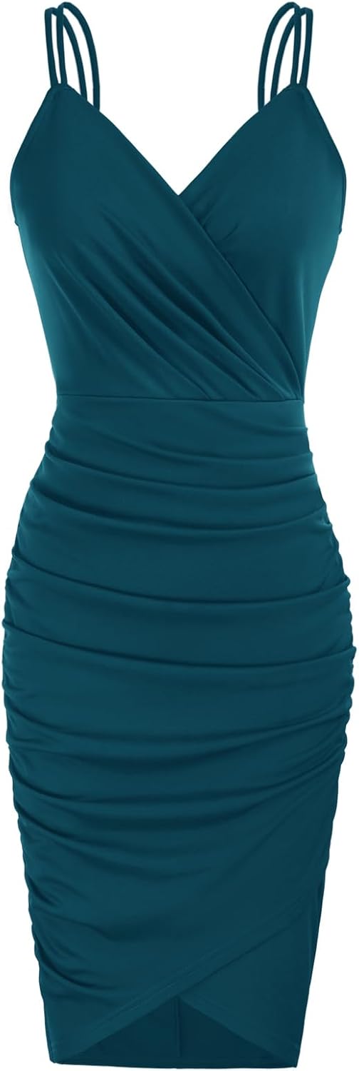 GRACE KARIN Women’s Sexy Spaghetti Straps Cocktail Dresses for Wedding Guest Ruched V-Neck Bodycon Dress