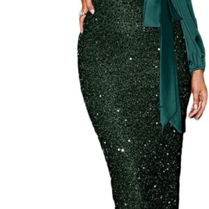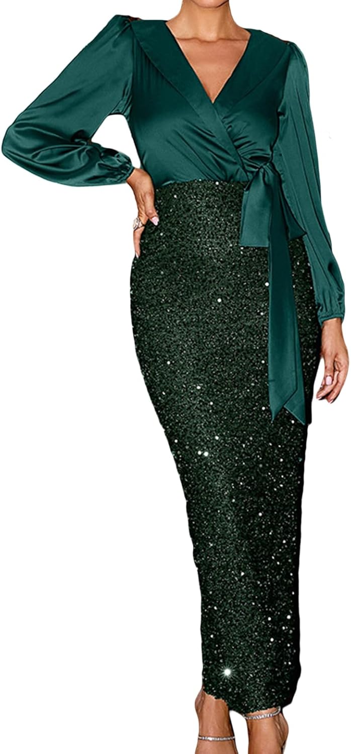 houstil Women Long Sleeve 1920s Sequin Formal Dress Maxi V Neck Cocktail Business Evening Gown Wedding Guest Dresses