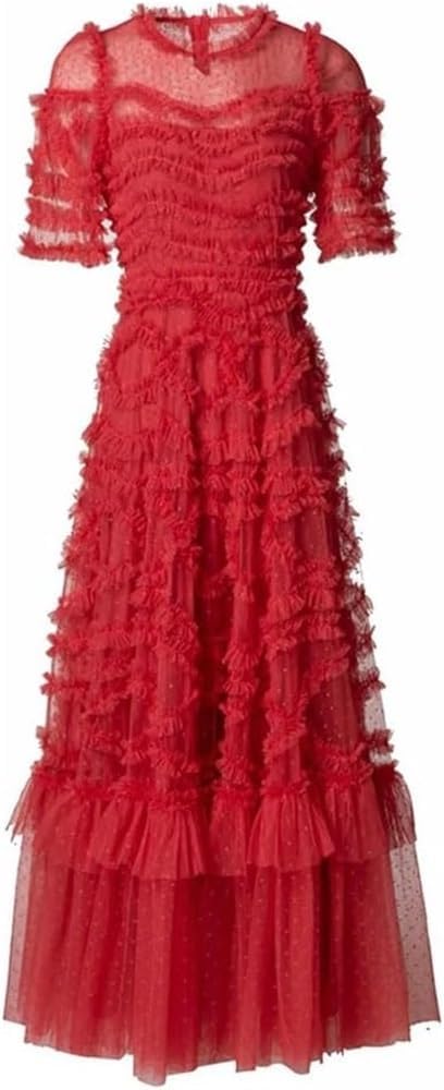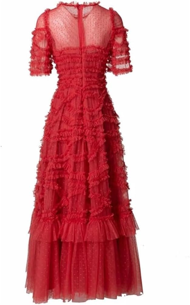 - Zipper closure provides a sleek fit, and the classic round neckline keeps the look refined for weddings, galas, or seasonal celebrations.