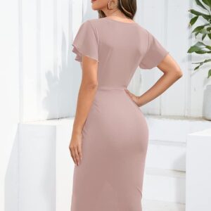 Machico Womens Wrap V Neck Bodycon Dress Ruffle Sleeve Ruched Work Dresses