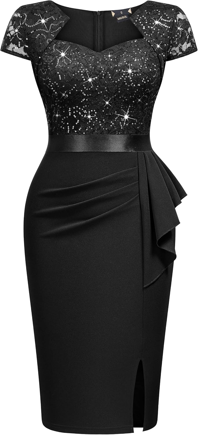 Elegant Square Neck Glitter Sequin Lace Cocktail Dress