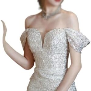 MVUYO Flat Shoulder Evening Gown for Women Banquet Toasting Dress Slimming
