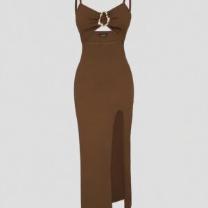 Turn heads with this women’s high slit evening dress, designed to elevate your partywear game. Made from a soft, stretchy blend of polyester and elastane, it fits like a second skin, creating a flattering bodycon silhouette. The bold V-neckline, hollow-out sides, and metal ring detail bring a modern, sexy edge, while adjustable spaghetti straps ensure the perfect fit. This chic maxi dress is perfect for summer nights, cocktail events, club parties, or formal evening occasions. The high slit offers just the right amount of drama, and its comfortable, breathable fabric ensures you can dance all night. Pair it with heels, a clutch, and your confidence for a standout look. Machine washable or dry clean friendly, this dress is as easy to maintain as it is to wear.