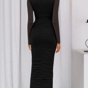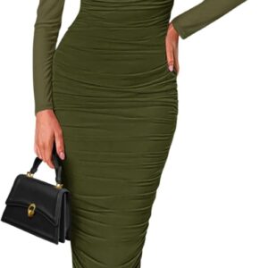 PRETTYGARDEN Fall Wedding Guest Dresses for Women 2025 Ruched Bodycon Midi Long Sleeve Formal Cocktail Dress