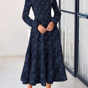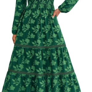 PRETTYGARDEN Long Sleeve Dress for Women 2025 Fall Elegant Modest Floral Boho Smocked Flowy Wedding Guest Midi Dresses