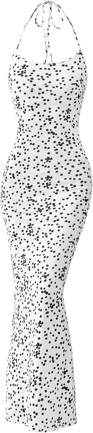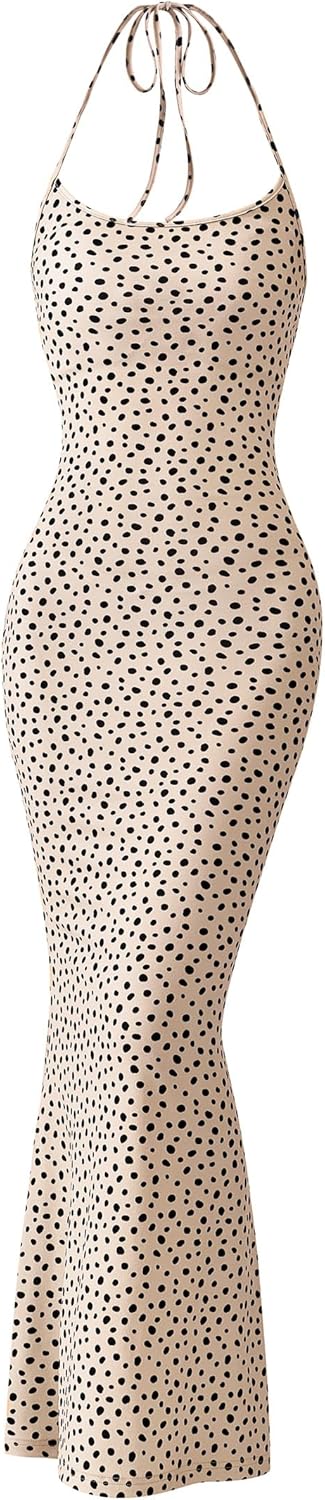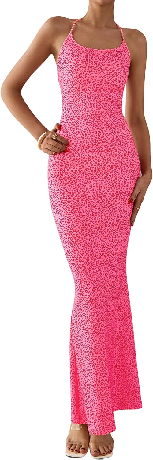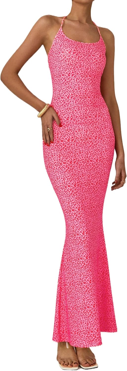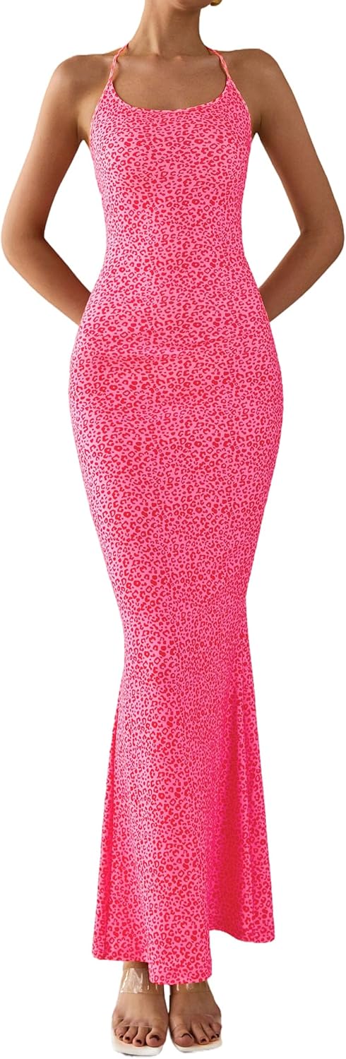 PRETTYGARDEN Maxi Dresses for Women 2025 Summer Halter Leopard Print Backless Sexy Bodycon Cocktail Beach Long Dress