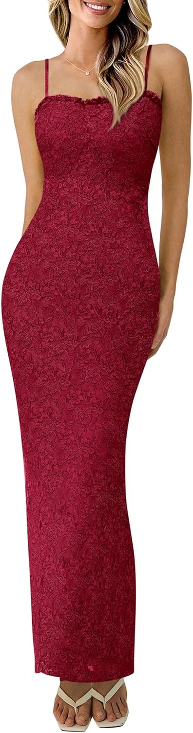 PRETTYGARDEN Summer Dresses for Women 2025 Lace Floral Bodycon Semi Formal Party Wedding Guest Boho Maxi Dress
