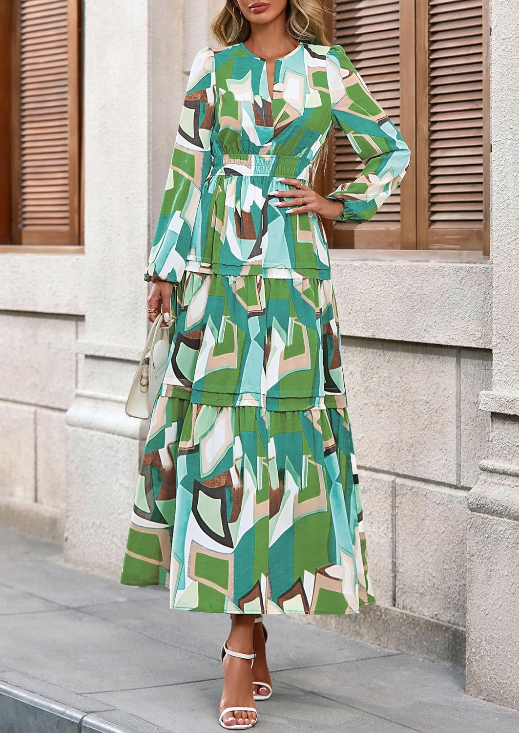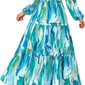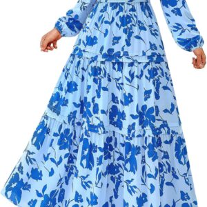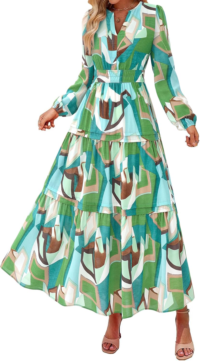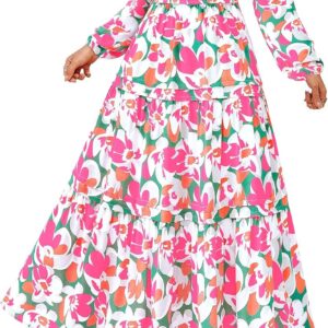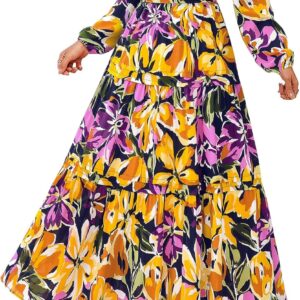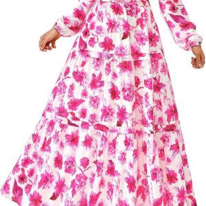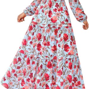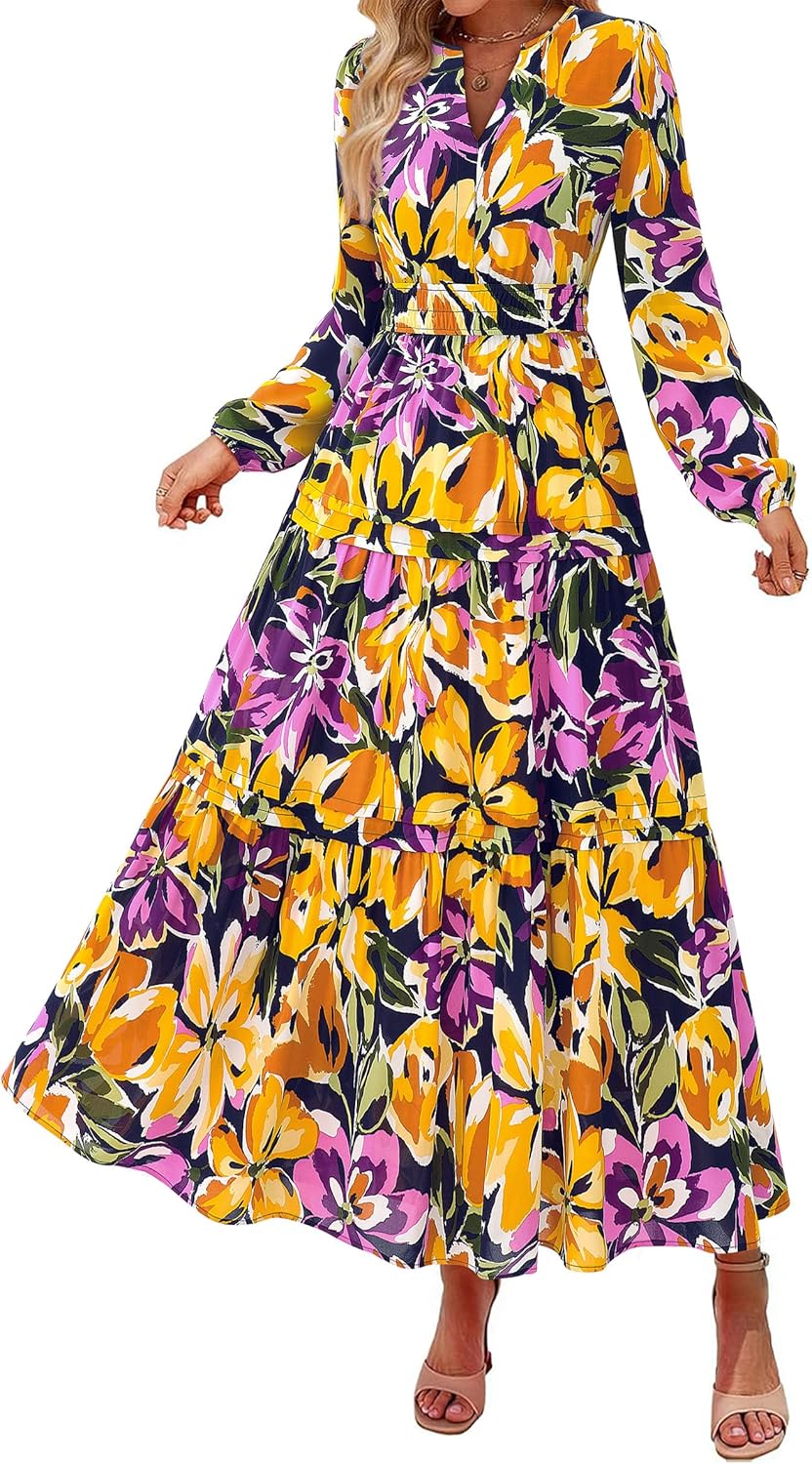 PRETTYGARDEN Women’s 2025 Fall Boho Maxi Dresses Floral Long Sleeve V Neck Flowy Elegant Wedding Guest Dress Vacation Outfits