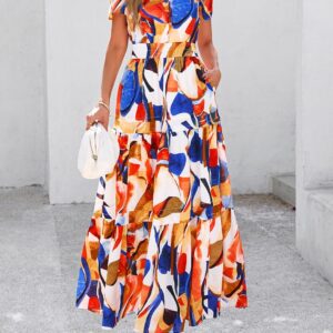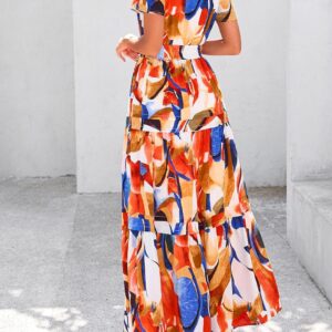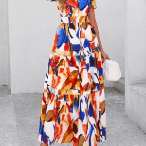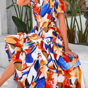 PRETTYGARDEN Short Sleeve V Neck Printed Beach Vacation Dresses for Women