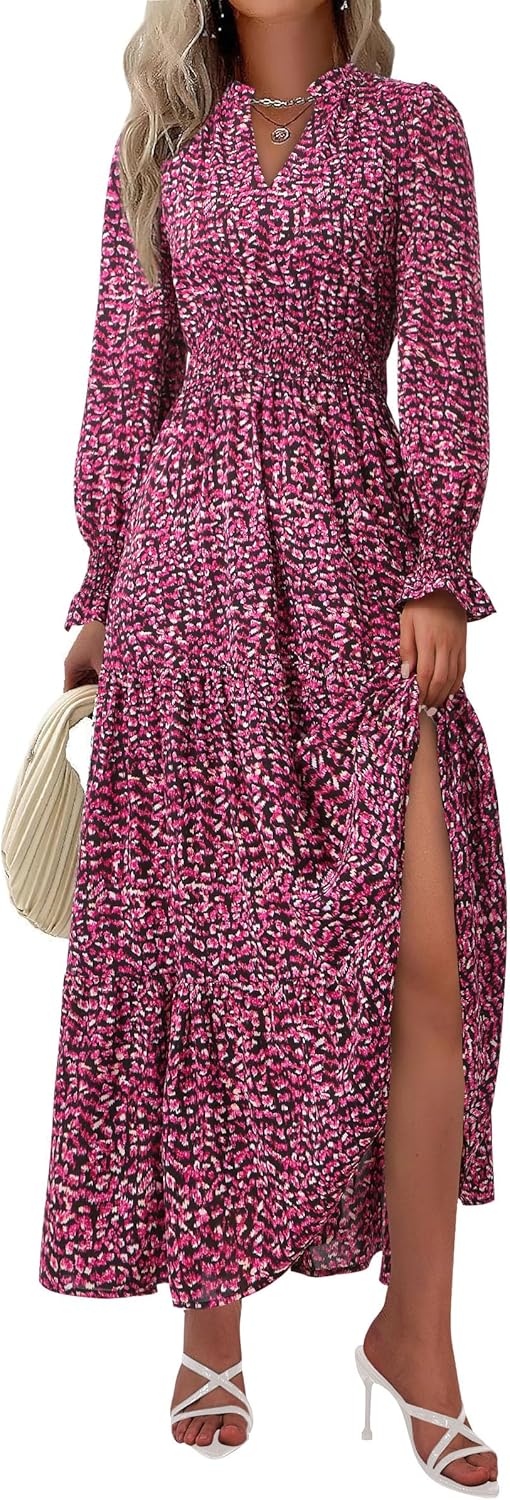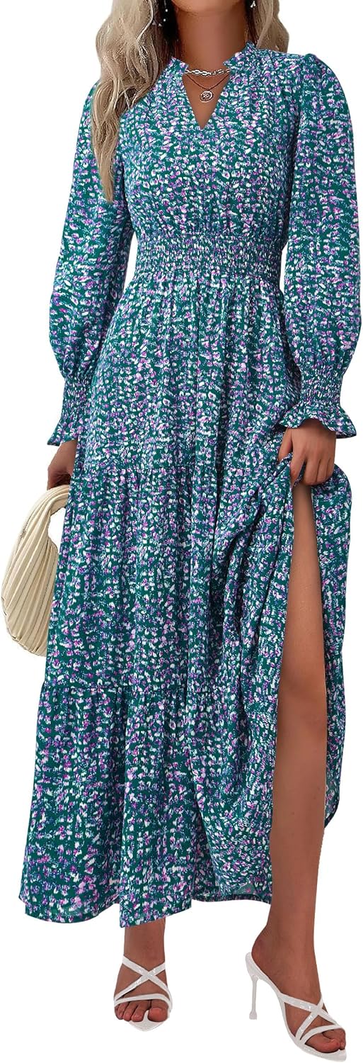PRETTYGARDEN Women’s Floral Maxi Dress 2025 Fall Long Sleeve V Neck Casual A Line Long Flowy Boho Party Dresses