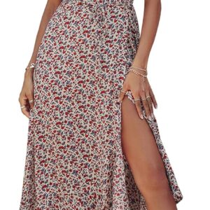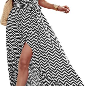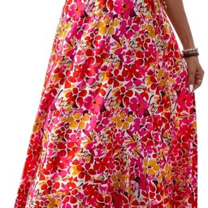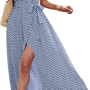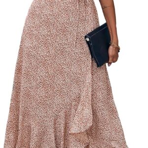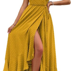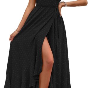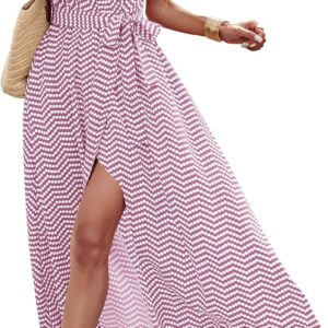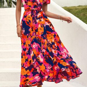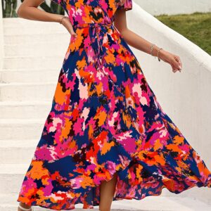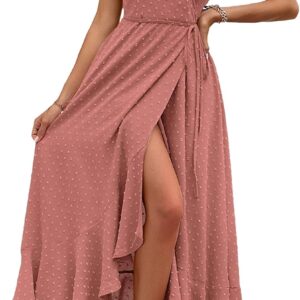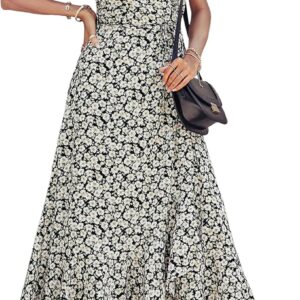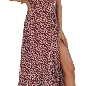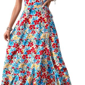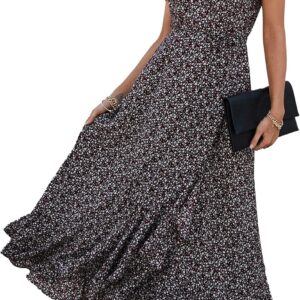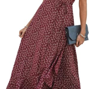 PRETTYGARDEN Women’s Summer Maxi Dress Casual Wrap Floral Boho Short Sleeve V Neck Split Ruffle Beach Long Dresses