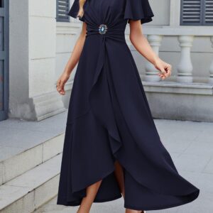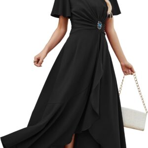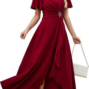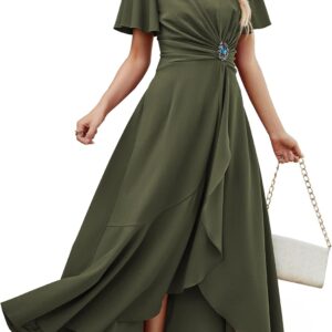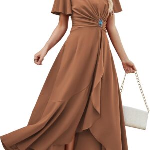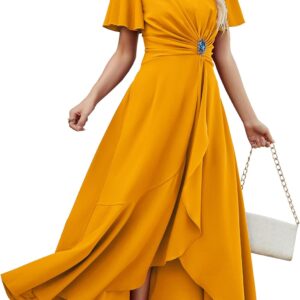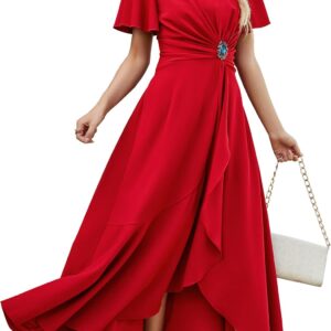 V-Neck Formal Dress for Women 2025 Summer Fashion–Have pockets–Ruffle sleeve