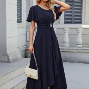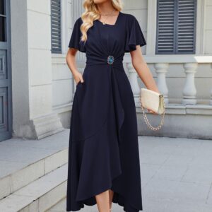Have pockets-Formal Wedding Guest Dress for Women Flared Midi Dress with Pockets