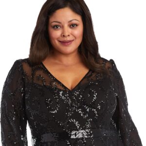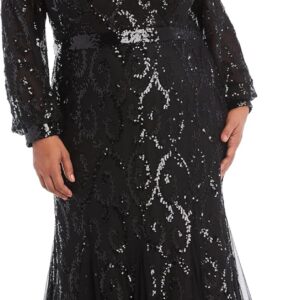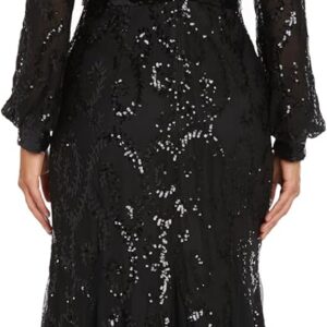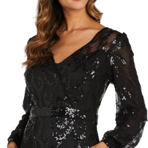 - Features: Long sequined Blouson silhouette dress W/ V Front, Long Sleeves, all over sequins, power mesh insets, hidden zipper closure.