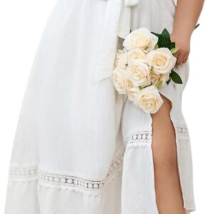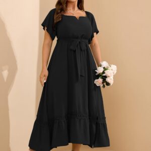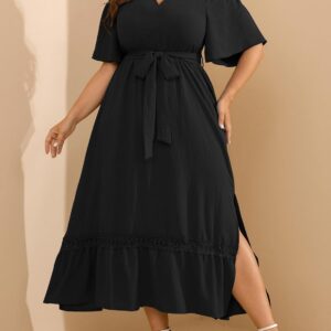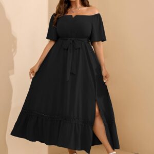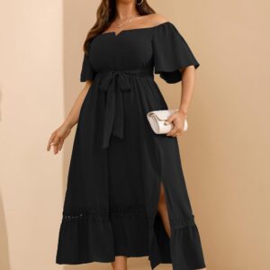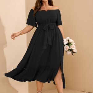 RWJ Women’s Plus Size Dress for Cocktail Wedding Guest Formal V Neck Off The Shoulder Maxi Dress with Belt