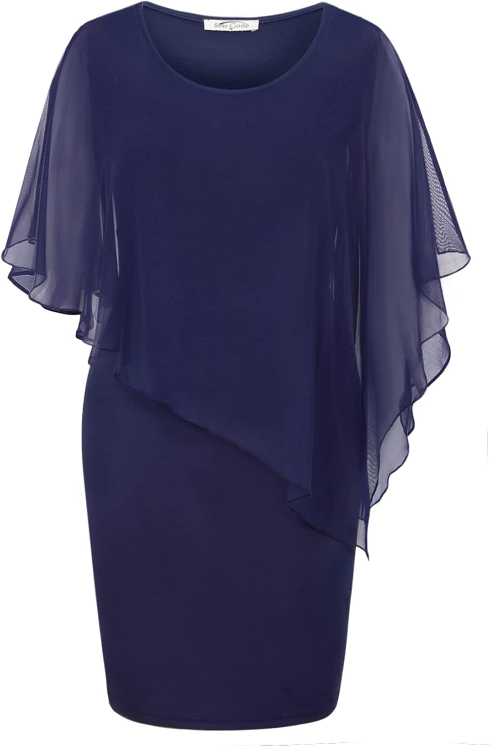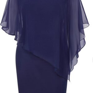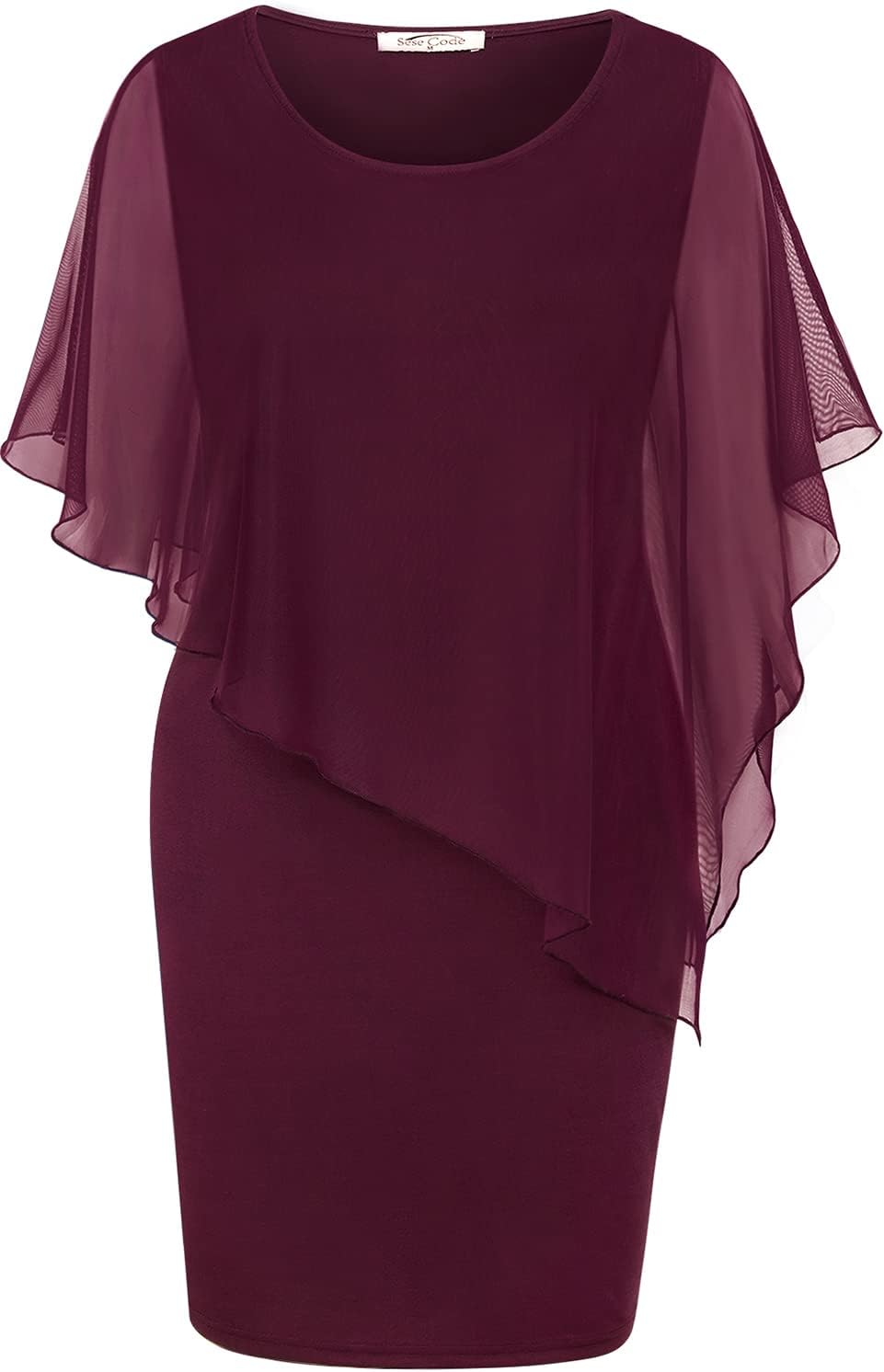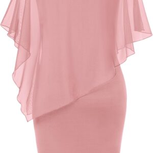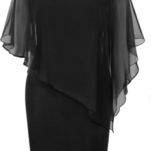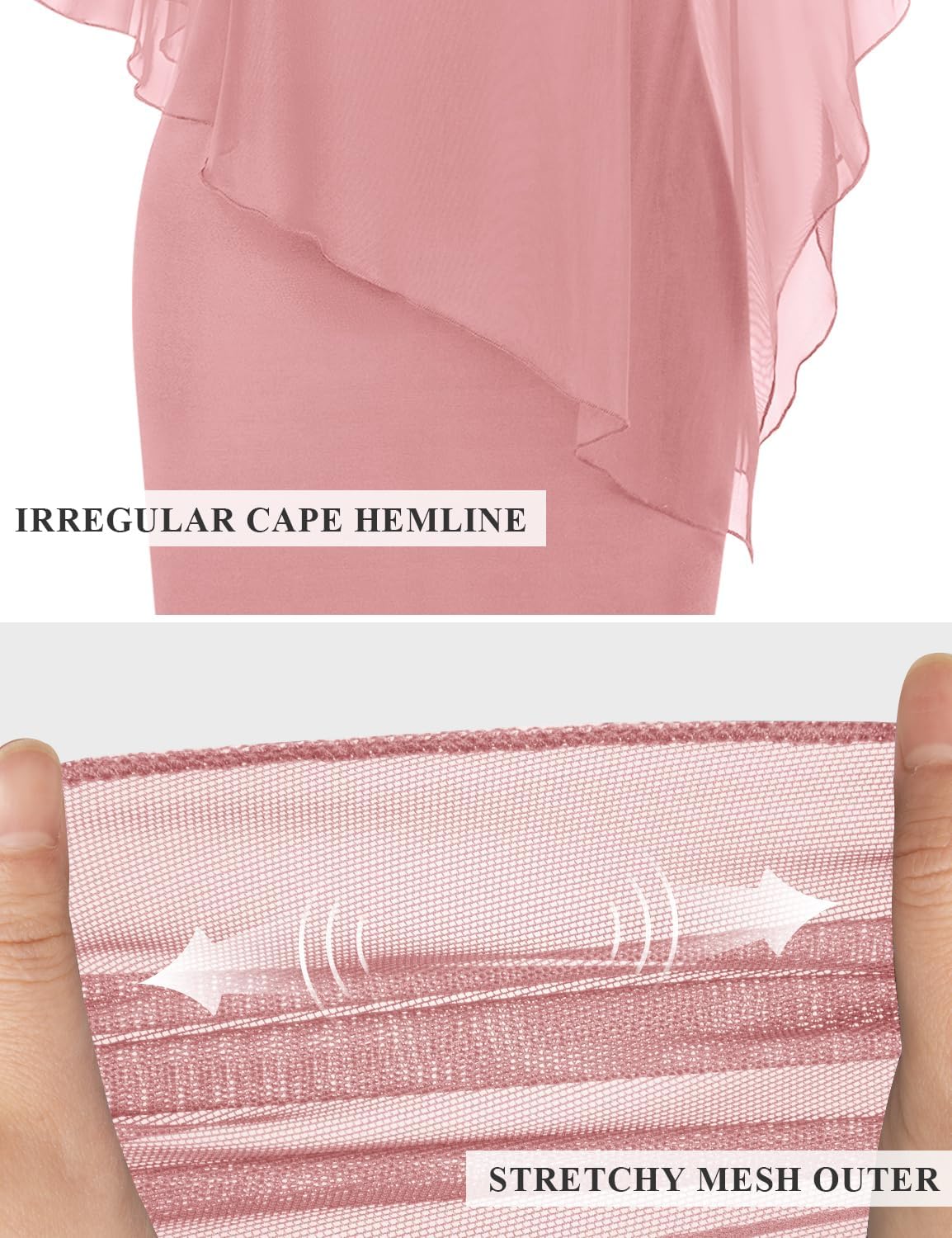 SeSe Code Women's Mesh Cape Overlay Bodycon Pencil Dress for Wedding Guest