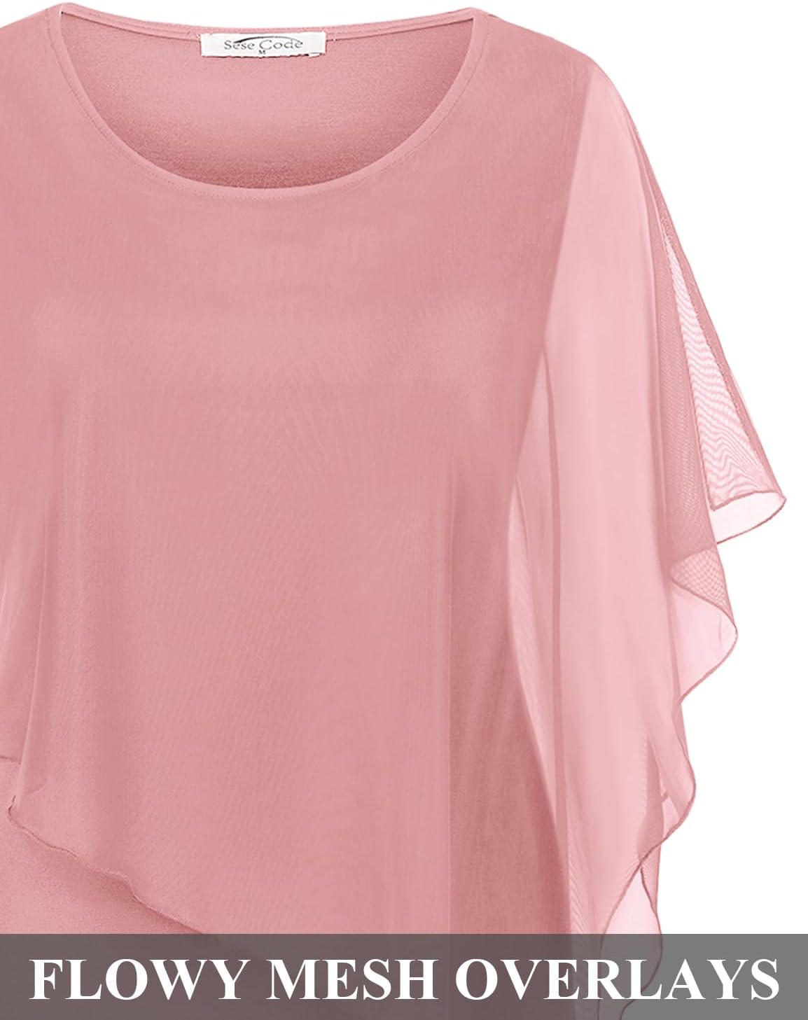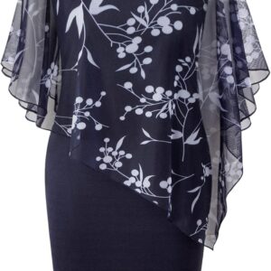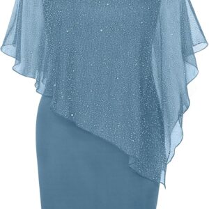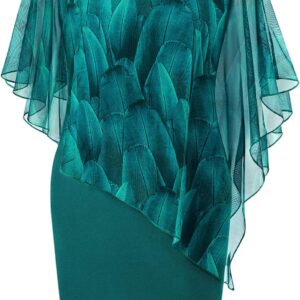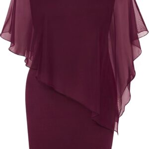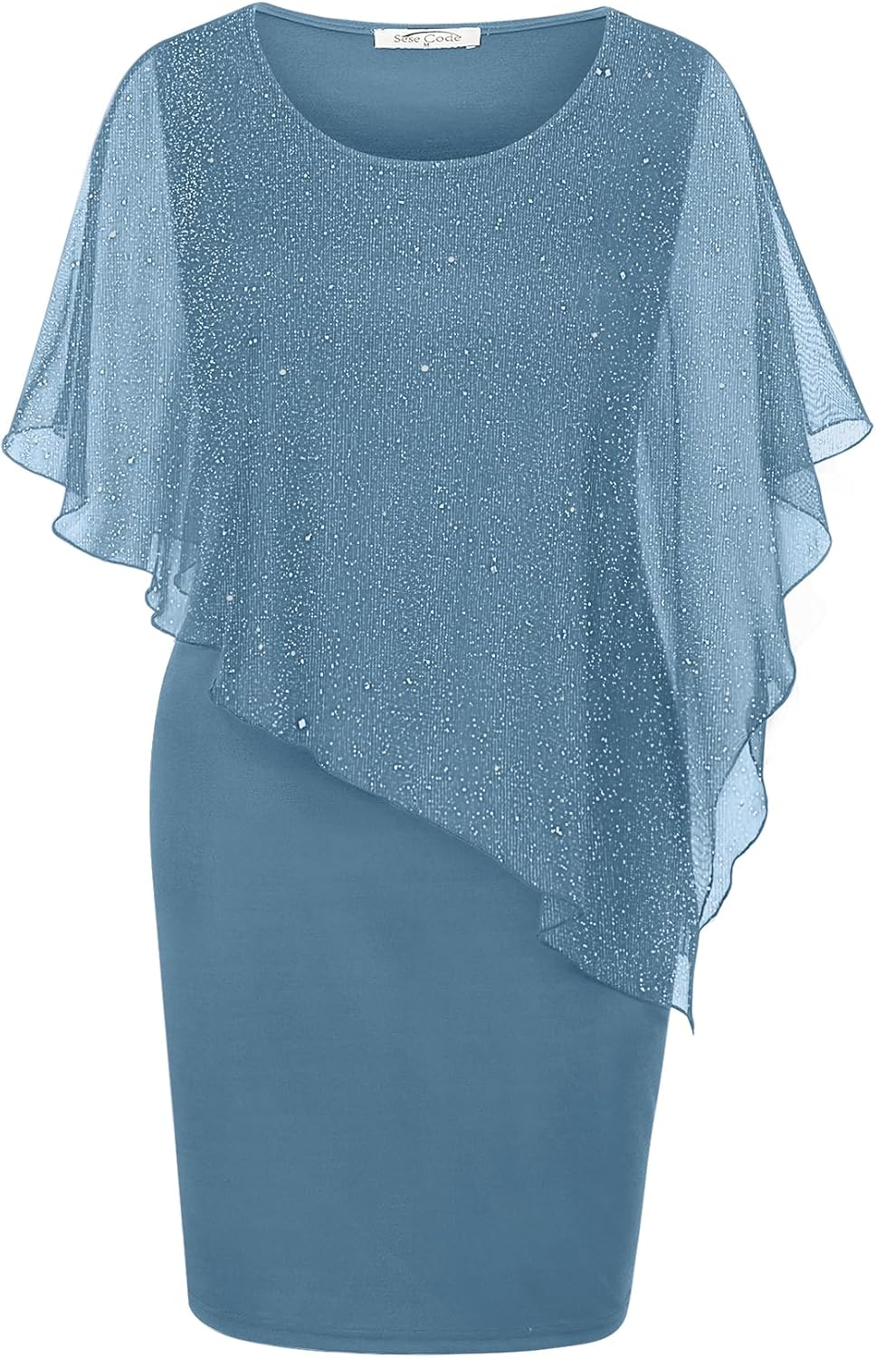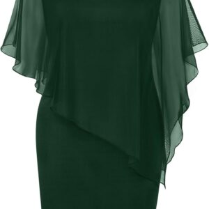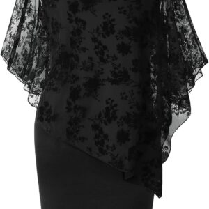 SeSe Code Women's Mesh Cape Overlay Bodycon Pencil Dress for Wedding Guest