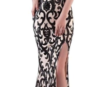 V-Neck Backless Evening Dresses Embroidered Tulle Formal Dress Sexy High Split Women Formal Gown
