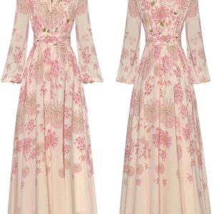 Women Elegant Evening Dress Flare Sleeves High Waist Print Swing for Formal Occasions