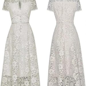 Women Lace Dress Short Sleeve Crystal Beading Hollow Out Elegant Gorgeous Evening Look