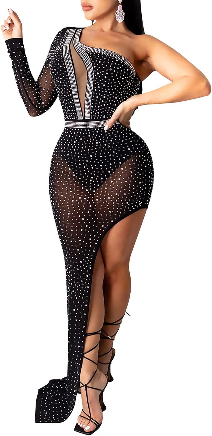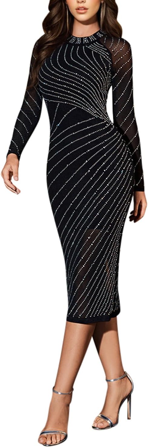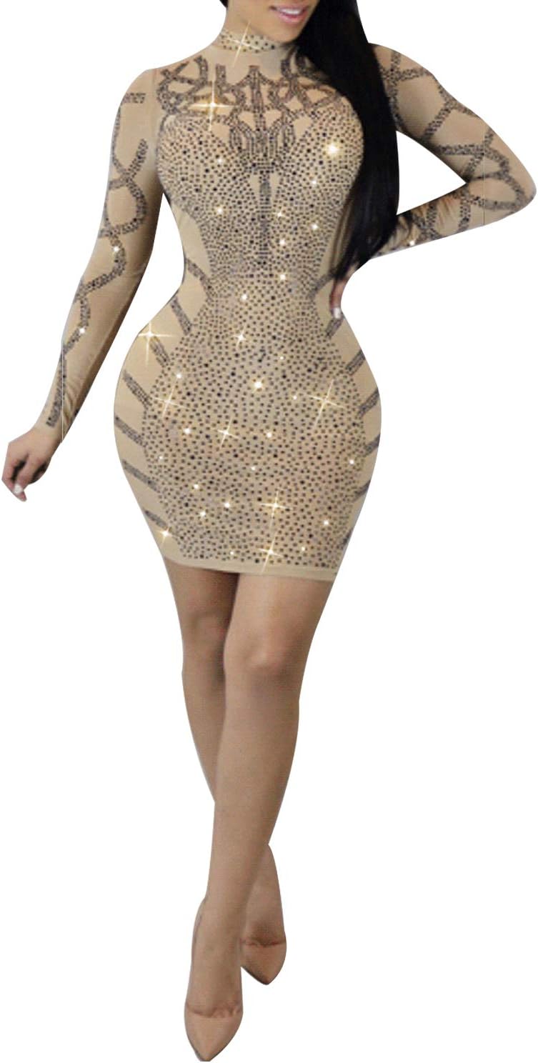 Women Long Sleeve Birthday Dresses Sexy hot Diamond Process Sexy Dress Party Club Night Dress\u2026